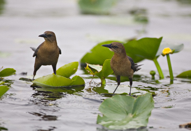 | The shots of the female Boat-tailed Grackles on the lily pads as well as the perched female and the displaying male in the next few shots were all taken at the same location and time as the shots just preceding. | ![]() |
