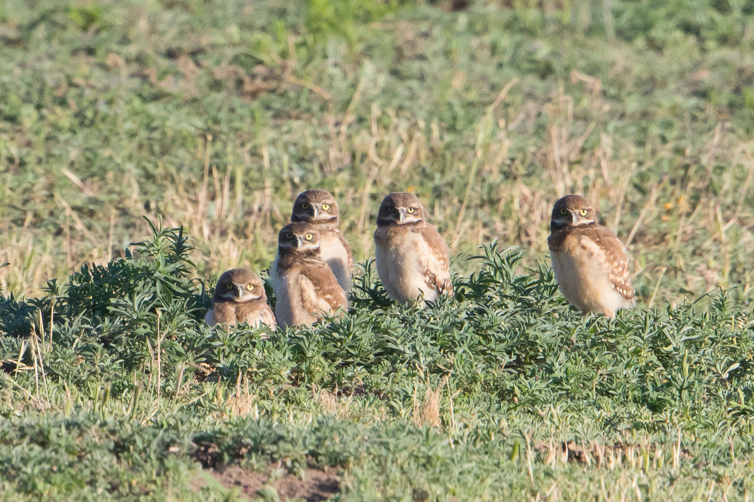 | Burrowing Owl Athene cunicularia 5 juvenile birds near nest hole near Dalhart, Dallam Co., Texas 16 June 2016 Lat 36.382114, Lon -103.015001 |