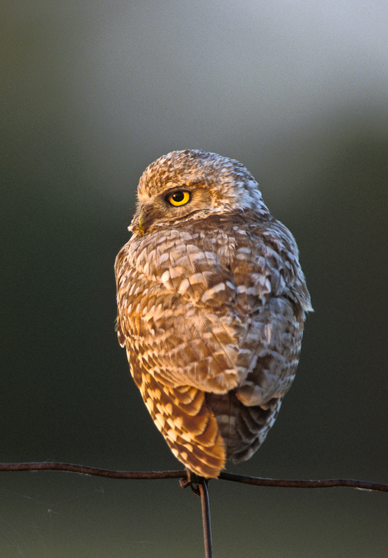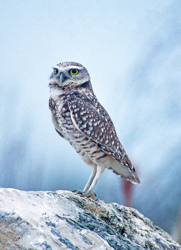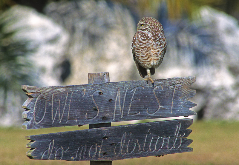 | The Burrowing Owl here was perched on a fence in Cherry Co., Nebraska, in June, 2001. It was shot with a Canon EOS 3 and 600mm F4 L lens on Fuji Velvia. | ![]() |