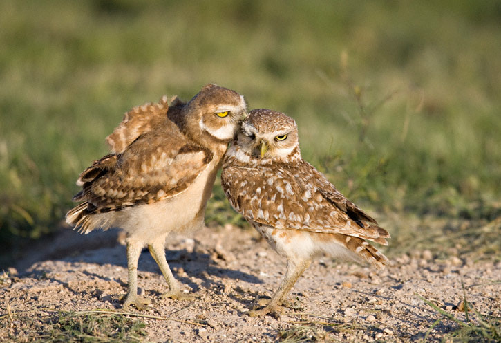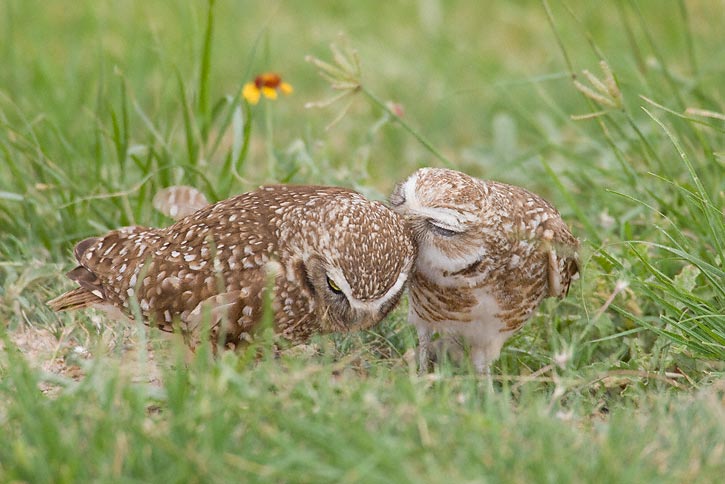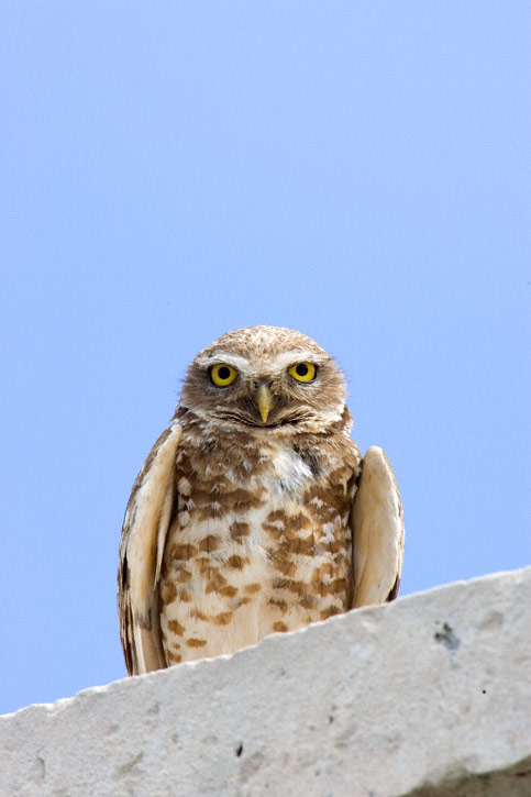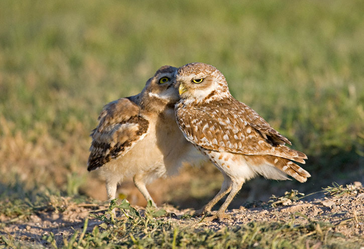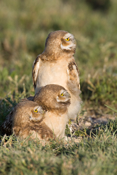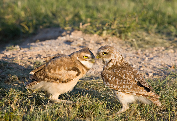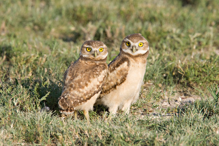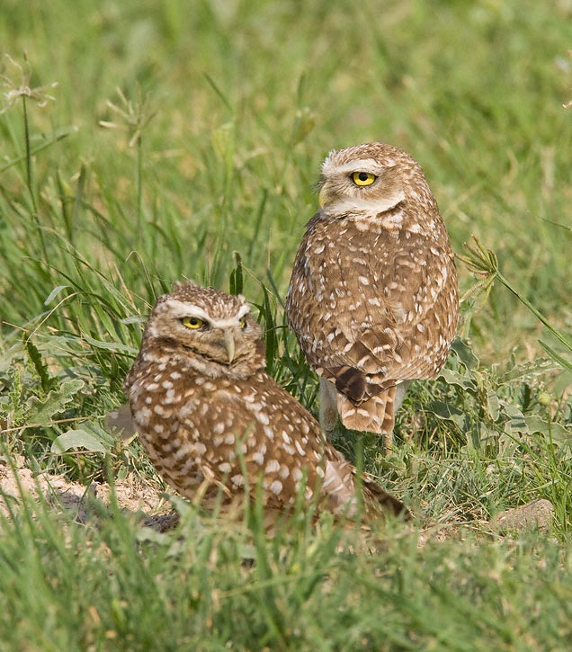 | The Burrowing Owl on the right was perched on top of the stone chimney of the old jail at historic Fort Stockton in the town of Fort Stockton, Pecos Co., Texas, in June, 2005. The shot was taken with a Canon EOS 1D Mark II and EF 600mm F/4 L IS lens. | ![]() |