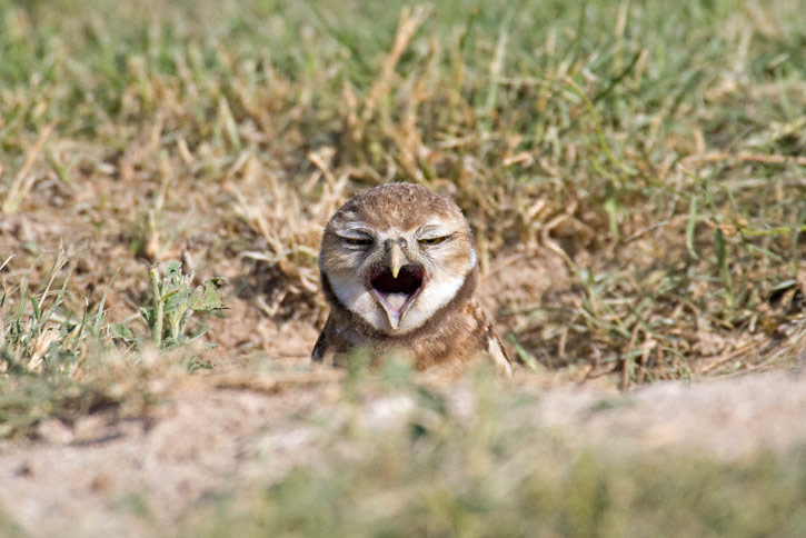 | Another youngster emerges from the burrow and gives a big yawn. Below are several more shots of the youngsters as they vocalize and keep a watch out for the adults bringing food. | ![]() |