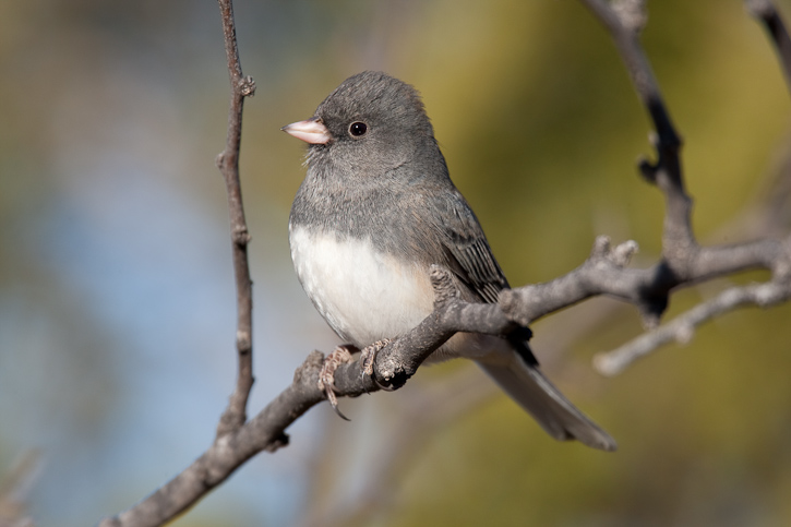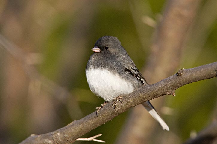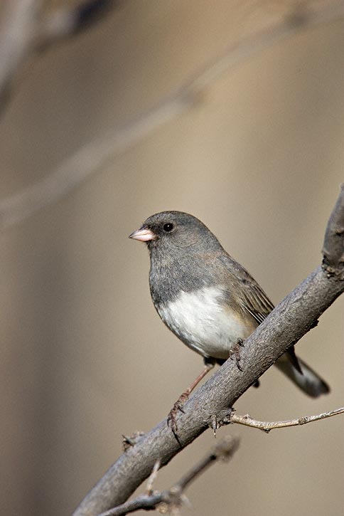 | The Dark-eyed Junco in the next two shots shown here was in Palo Duro Canyon State Park, Randall Co., Texas, in January, 2009. These images were taken with a Canon EOS 1D Mark III and EF 800mm F/5.6 L IS lens and 1.4X extender. | ![]() |