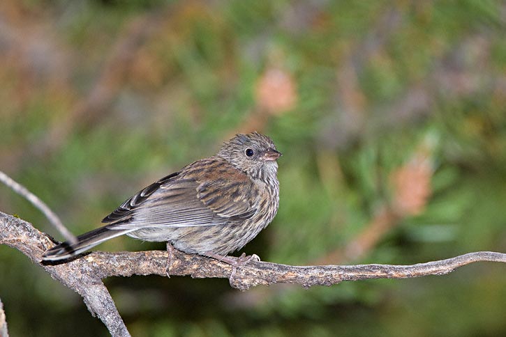 | The next 6 shots show the "Gray-headed" race of Dark-eyed Junco. The first 2 shots show an adult and the bottom 4 shots show juvenile birds. These 6 shots were taken in Breckenridge, Summit Co., Colorado, in July, 2008, with a Canon EOS 1D Mark III and EF 500mm F/4 L IS lens and 1.4X extender. | ![]() |
