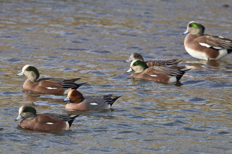 | Eurasian Wigeon Anas penelope with American Wigeons Sweetwater River, San Diego Co., California 15 November 2013 |