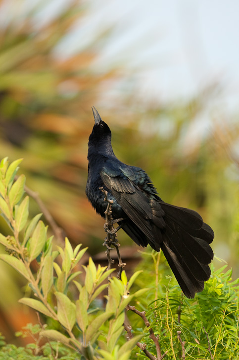 | Great-tailed Grackle Quiscalus mexicanus male vocalizing Port Bolivar, Galveston Co., Texas 22 April 2016 |