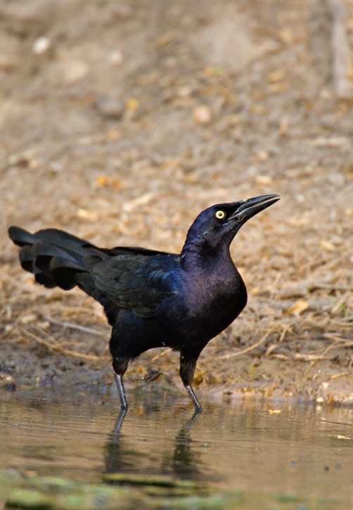 | The male Great-tailed Grackle here was photographed at a small south Texas water hole in Hidalgo Co., during April, 2006, with a Canon EOS 1D Mark II and EF 600mm F/4 L IS lens and 2X extender. | ![]() |