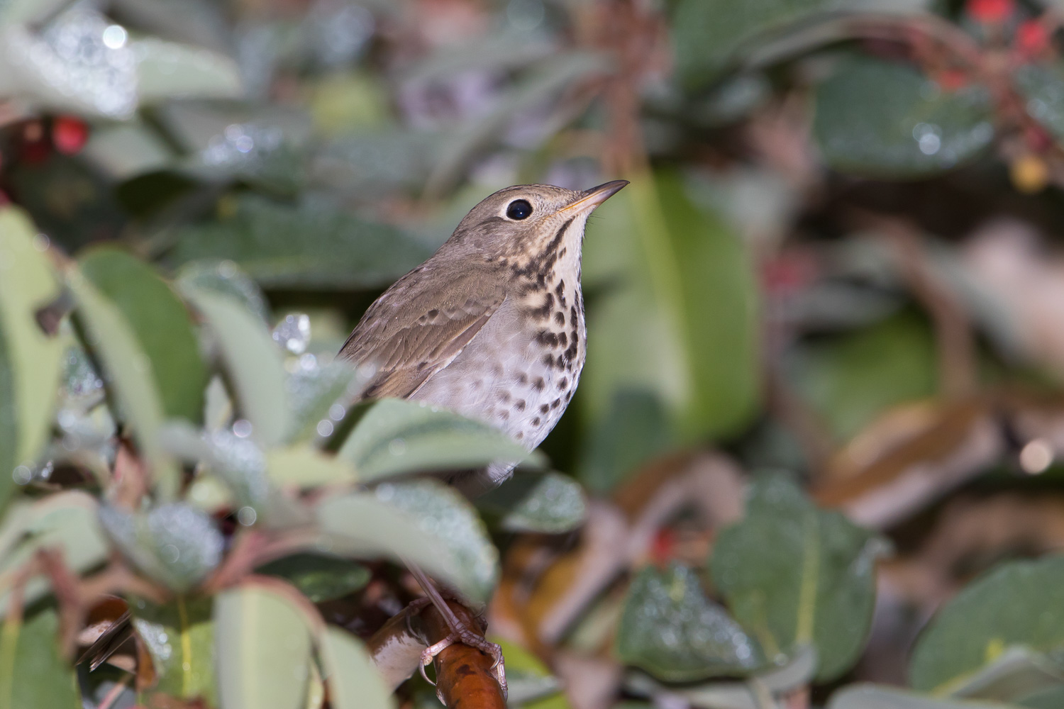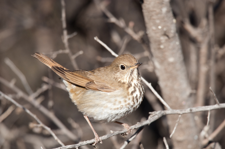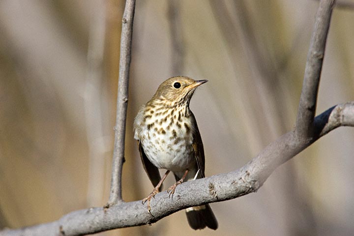 | The Hermit Thrush in the next 2 shots was in Palo Duro Canyon State Park, Randall Co., Texas, in January, 2009. These 2 images were taken with a Canon EOS 1D Mark III and EF 800mm F/5.6 L IS lens and 1.4X extender. | ![]() |