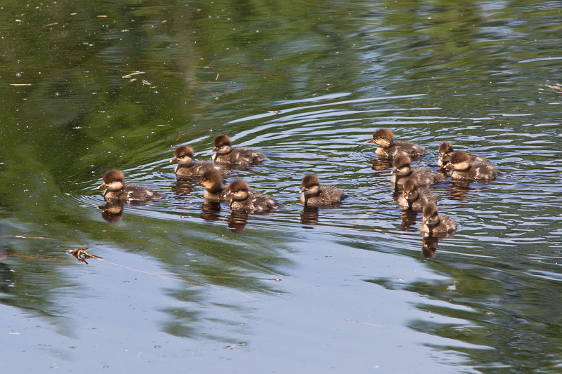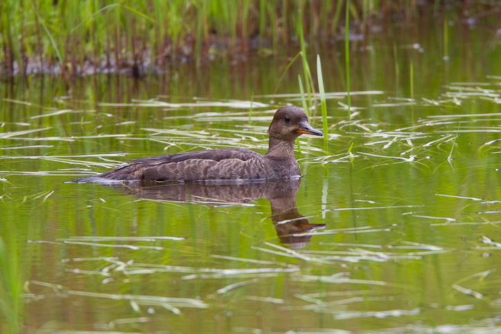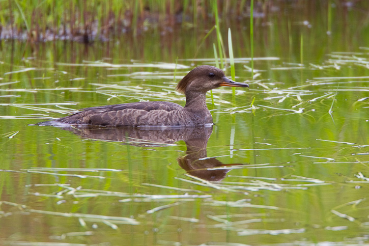 | Hooded Merganser Lophodytes cucullatus Rearing Pond, Vilas Co., Wisconsin 16 June 2014 45.9529 -89.5492 mother bird was nearby in thick vegetation. |