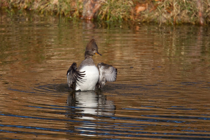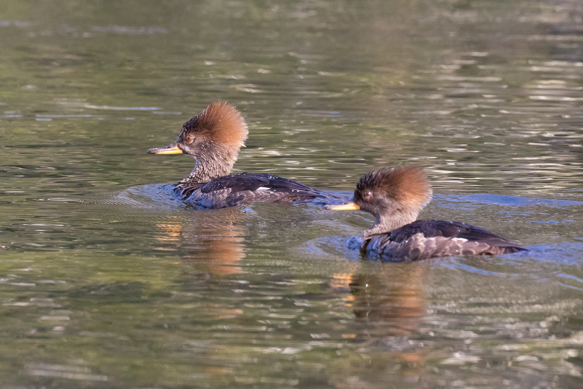 The next eight shots of male and female Hooded Mergansers were taken in Austin, Travis Co., Texas, in December, 2010, with a Canon EOS 1D Mark IV and an EF 800mm F/5.6 L IS lens and 1.4X extender. These ducks were fairly distant and the images have been cropped quite a bit.