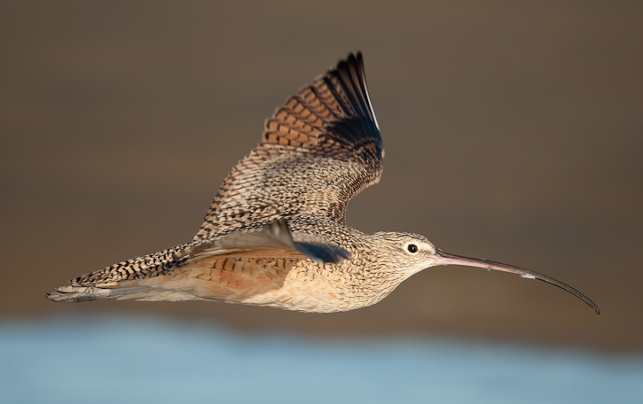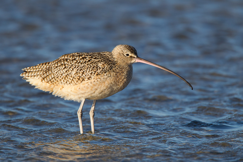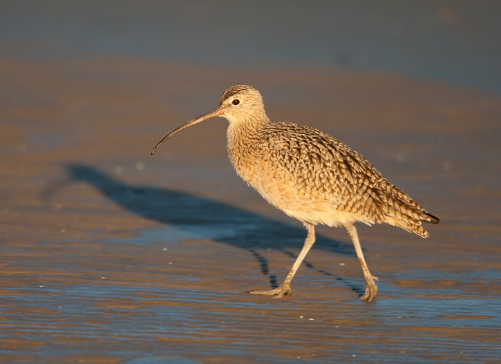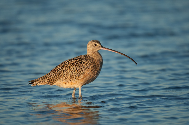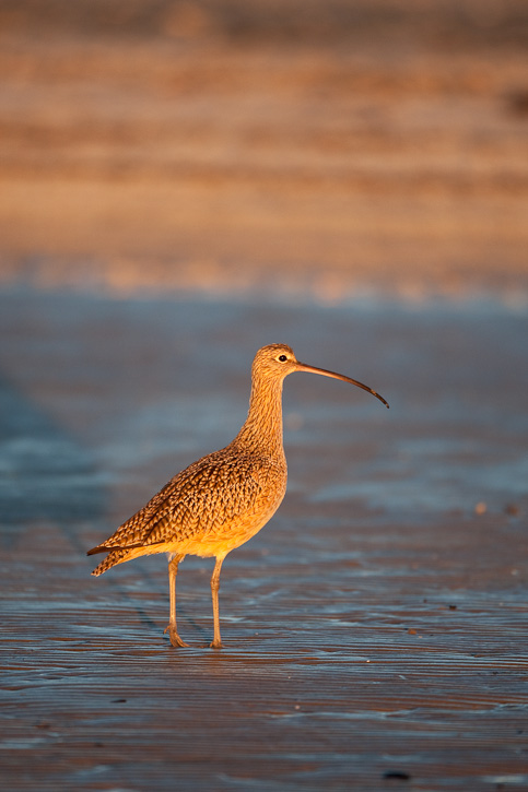 | The Long-billed Curlew shown here was photographed in the soft, golden light at dawn on a clear November, 2009, morning at Bolivar Flats, Galveston Co., Texas, with a Canon EOS 1D Mark III and an EF 800mm F/5.6 L IS lens. The next 4 shots after this one were also shot at this same date and location. | ![]() |