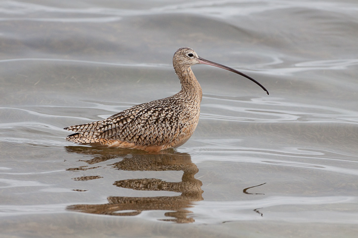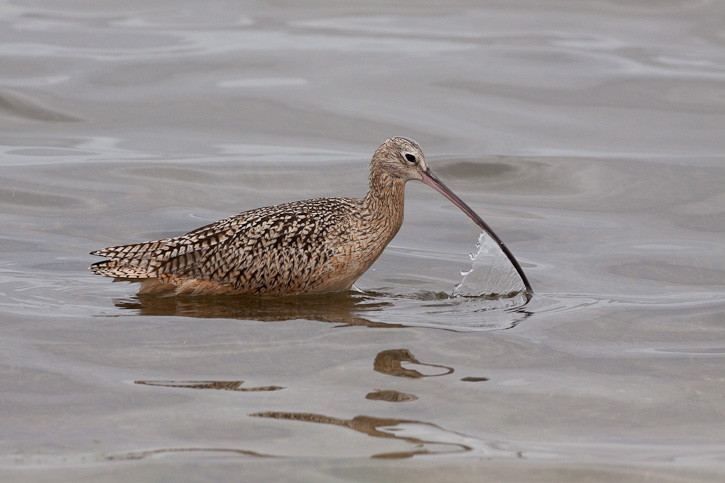 | The next 3 shots show a Long-billed Curlew foraging in shallow water at Corpus Christi, Nueces Co., Texas, in February, 2010. These shots were taken with a Canon EOS 50D and an EF 800mm F/5.6 L IS lens. | ![]() |