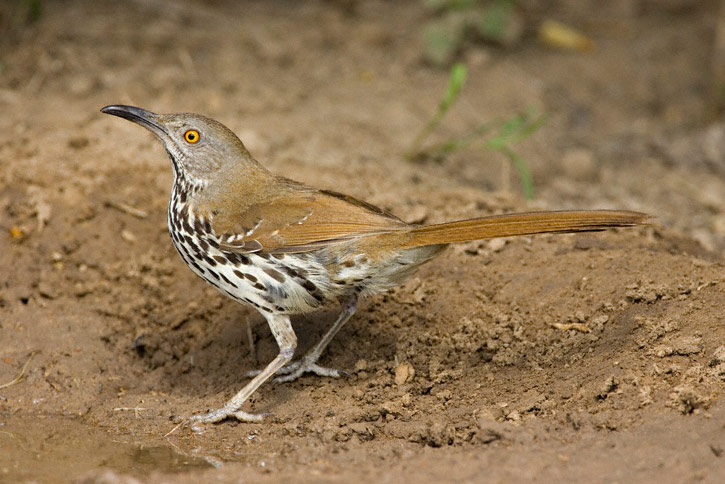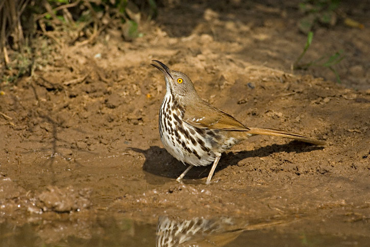 | The next two Long-billed Thrasher shots here show a bird visiting a water hole in south Texas in Starr County, in April, 2007. These shots were taken with a Canon EOS 1D Mark II and an EF 600mm F/4 L IS lens. |