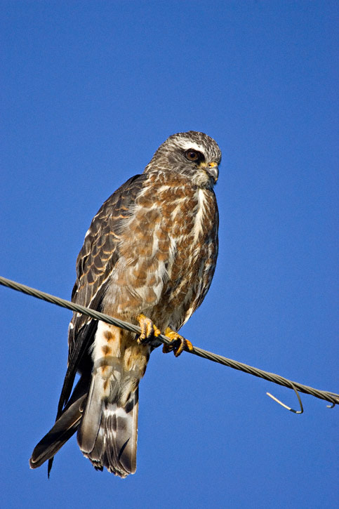 | The Mississippi Kite (Ictinia mississippiensis) nests across much of the south east and south central United States. In the fall, the species often migrates in flocks as they head south, but often single individuals may be encountered. The three shots of juvenile Mississippi Kite shown here show two individuals in the town of Balmorhea, Reeves Co., Texas, in September, 2006. These shots were taken with a Canon EOS 1D Mark II and EF 600mm F/4 L IS lens and 1.4X extender. | ![]() |