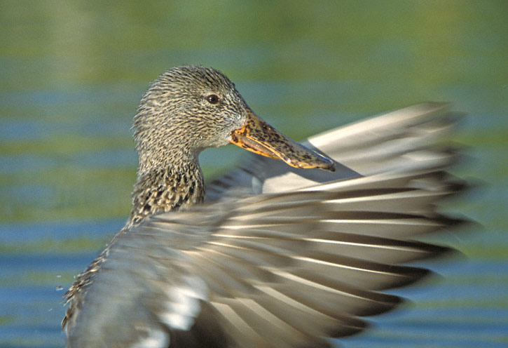 | The next four shots of Northern Shoveler (one shot of a male followed by 3 shots of a female) were taken in Austin, Travis Co., Texas, in December, 2010, with a Canon EOS 1D Mark IV and an EF 800mm F/4 L IS lens and 1.4X extender. | ![]() |