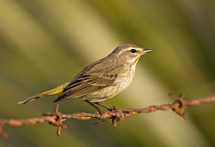 | Palm Warblers certainly seem to perch on man-made things a lot! This one was on a barbed wire fence along the edge of Lake Kissimmee, Osceola Co., Florida, in February, 2007. It was shot with the same gear as above. | ![]() |