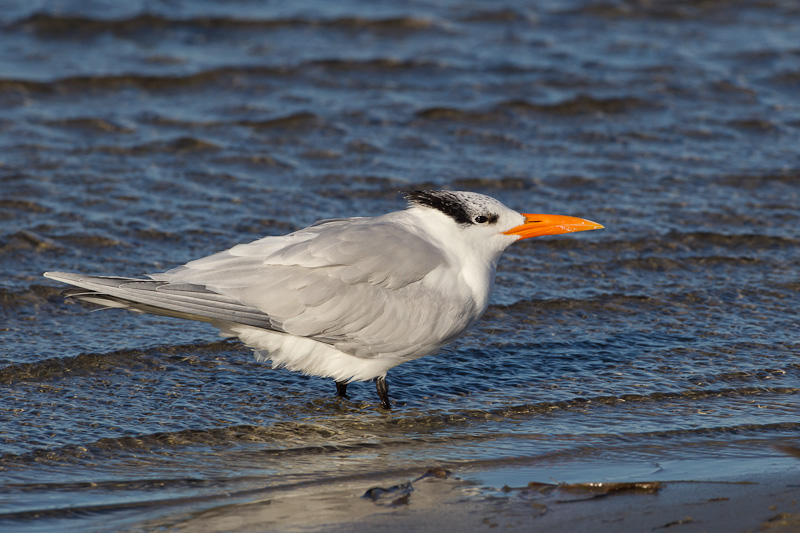 | The Royal Tern (Sterna maxima) is pretty much strictly a coastal tern and is only rarely found far from salt water. It can be common on the Atlantic and Gulf coasts of the United States as well as parts of the California coast at certain times of the year. It is also found along the coasts of both Central and South America. The first eleven shots here were taken on Sanibel Island, Lee Co., Florida in November, 2006, with a Canon EOS 1D Mark II and EF 500mm F/4 L IS lens. | ![]() |