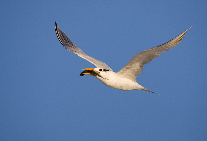 | The next three shots show basic (winter) plumaged Royal Terns at South Padre Island, Cameron Co., Texas, in December, 2010. These images were taken with a Canon EOS 1D Mark IV and an EF 800mm F/5.6 L IS lens. | ![]() |