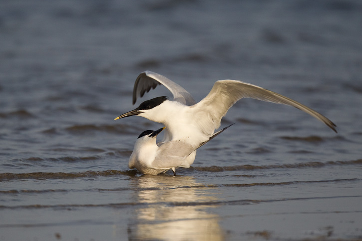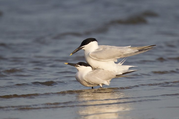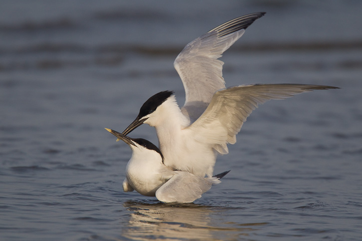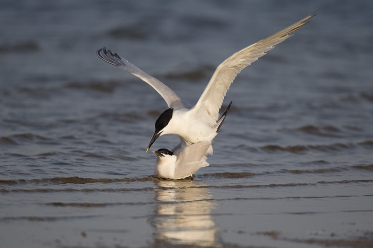| The next 10 images show a pair of Sandwich Terns in copulation at South Padre Island, Cameron Co., Texas, in May, 2010. These images were taken with a Canon EOS 1D Mark IV and an EF 800mm F/5.6 L IS lens. | ![]() |