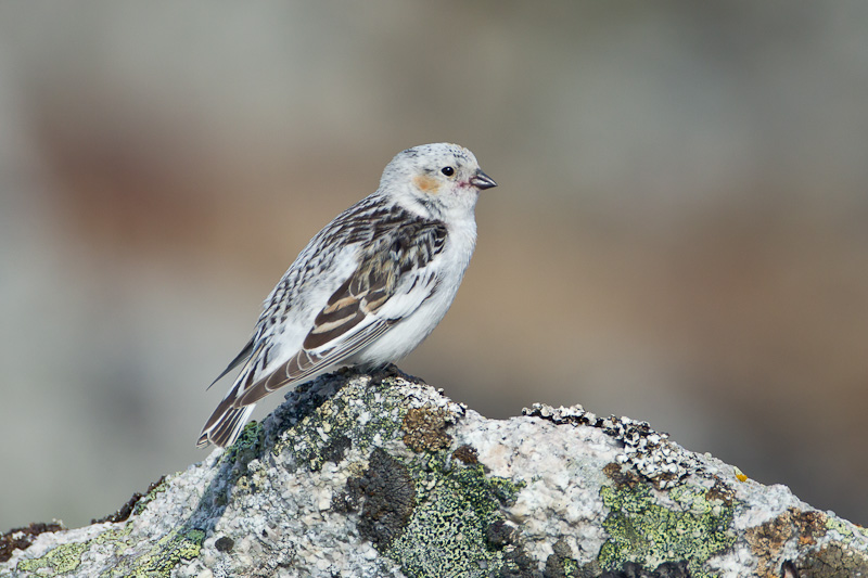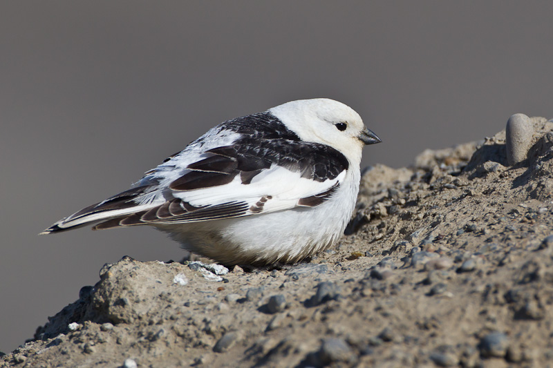 | The Snow Bunting (Plectrophenax nivalis) is a breeding species across parts of northern Canada and Alaska and winters well into the lower 48 states. In the breeding range the species is fairly common in tundra areas and rocky areas of coastlines. The first four shots on this page show breeding plumaged males at Gambell, St. Lawrence Island, Alaska, in May, 2012. These shots were all taken with a Canon EOS 1D Mark IV and an EF 500mm F/4 L IS lens and 1.4X extender. |