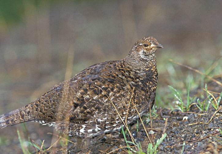 | The Sooty Grouse (Dendragapus fuliginosus) is a recent "split" from the Blue Grouse complex. The Sooty Grouse is a bird of the coastal mountains of the western United States and Canada. The two shots here of female Sooty Grouse were taken on Hurricane Ridge, Olympic National Park, Clallam Co., Washington in June, 1999. The shots were taken with an EOS 1N and EF 300mm F/4 L Is lens and 1.4X extender on Fuji Sensia film. |