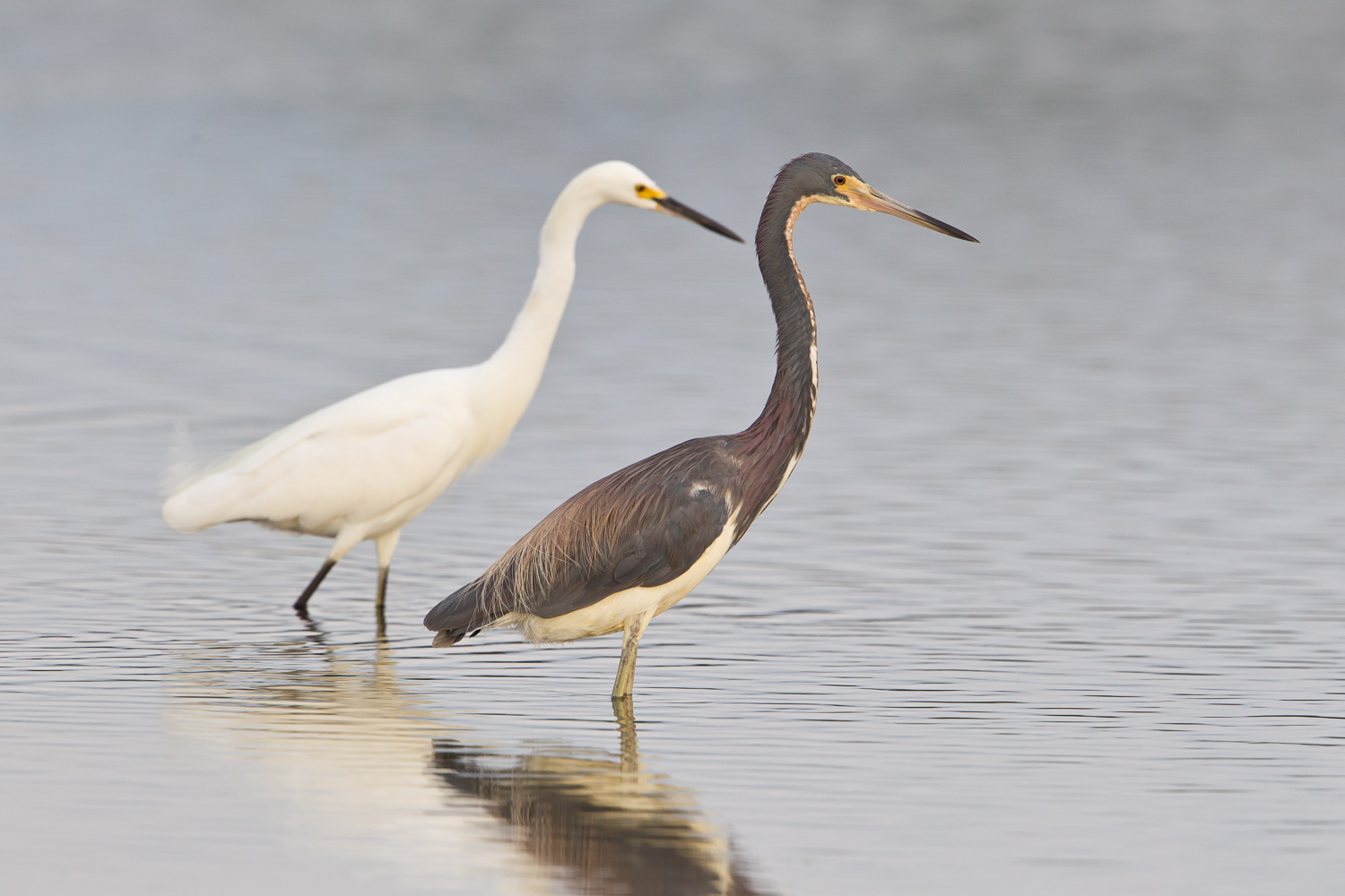 | Tricolored Heron Egretta tricolor with Snowy Egret on the left Pine Island Sound, Ft. Myers, Lee Co., Florida 14 July 2014 |