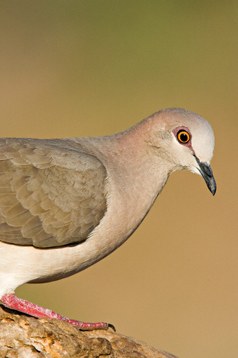 | The White-tipped Dove (Leptotila verreauxi) is essentially a tropical species which only enters the United States in deep south Texas. The species ranges south through Mexico and Central America all the way to Peru and Argentina. Its vocalization, which sounds to some as if a person was blowing across the mouth of a coke bottle, is a familiar sound in the Rio Grande Valley of Texas. The first 6 images shown here were all taken in spring and early summer, 2006, in Hidalgo Co., Texas with a Canon EOS 1D Mark II and EF 600mm F/4 L IS lens and a 1.4 or 2X extender. |