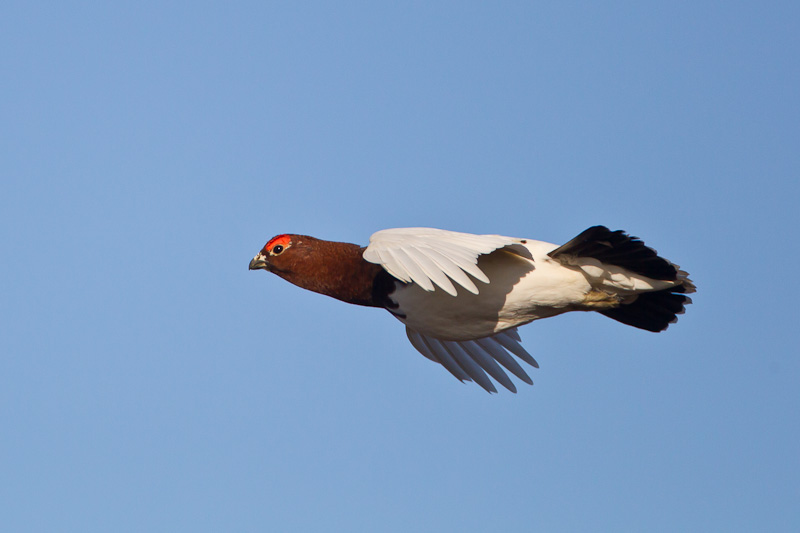 | The next three shots show a male Willow Ptarmigan in flight at Nome, Alaska, in may, 2012. |