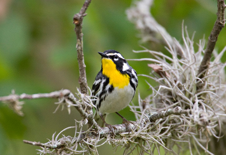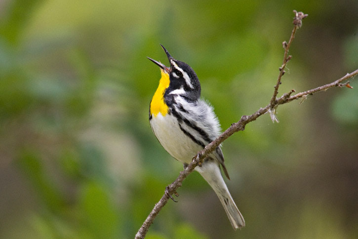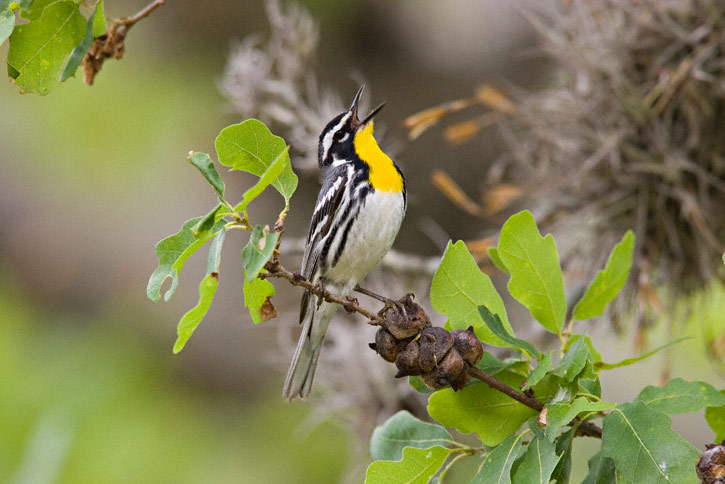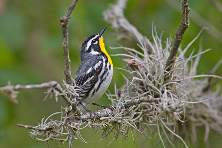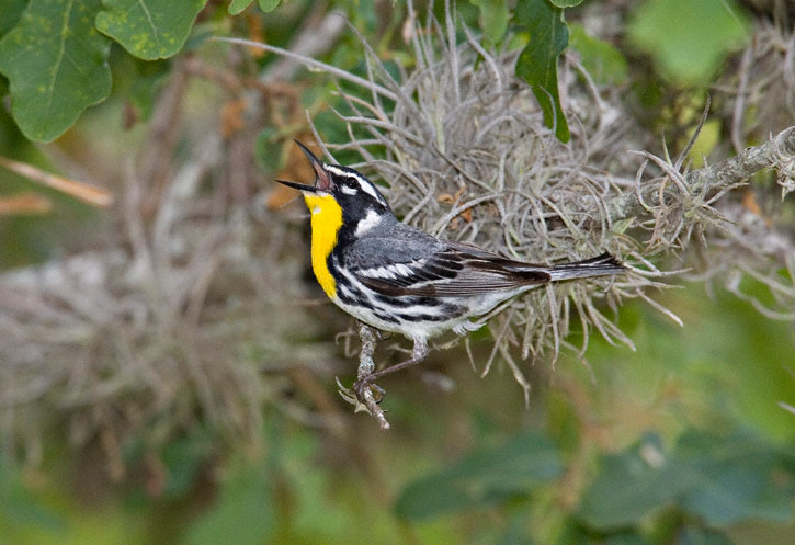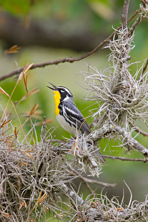| The beautiful Yellow-throated Warbler (Setophaga dominica) is a breeder across much of the eastern United States, west into the Texas Hill Country. In the latter area, this species often breeds along cypress-lined streams which is where the singing male shown here was photographed in April, 2007. The first 8 images were taken in Bandera Co., Texas, with a Canon EOS 1D Mark II and EF 600mm F/4 L IS lens and 2X extender. These images are of the western interior race of this species, Dendroica dominica albilora. | ![]() |
