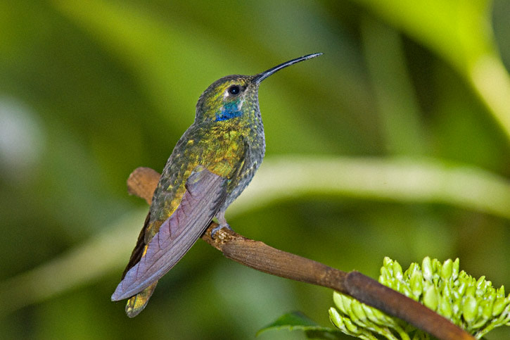 | The next three images show Green Violet-ears near Machu Picchu, Peru, in July, 2006. These three images were taken with a Canon EOS 1D Mark II and EF 300mm F/4 L IS lens and 2X extender and 580 flash. |