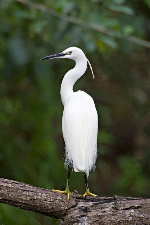 | The Little Egret (Egretta garzetta) is a widespread species of southern Europe, east Africa, much of Asia, Australia, and New Zealand. It is superficially similar to the Snowy Egret of the Americas, but note the head plumes of the Little Egret. The bird shown here was at the Polokwane Bird Reserve near Pietersburg, Limpopo Province, South Africa in January, 2006. These digital shots were taken with a Canon EOS 1D Mark II & EF 500mm F/4L IS lens and 1.4X extender. | ![]() |