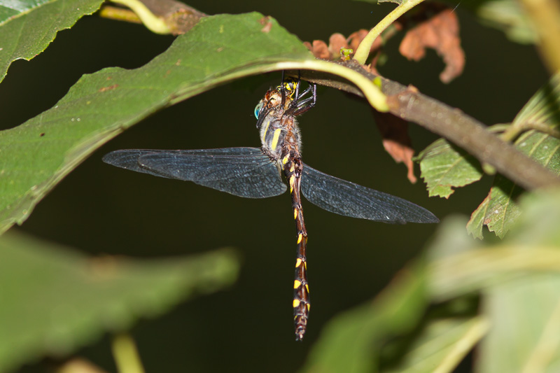 Within the United States, the Apache Spiketail (Cordulegaster diadema) occurs from southwestern New Mexico across a portion of Arizona. The first five shots on this page show a male in Graham Co., Arizona. These were the only images I could get on that occasion. Apache Spiketail Cordulegaster diadema male Wet Canyon, Pinaleno Mountains, Graham Co., Arizona 29 August 2013 32.6513 -109.8131 |