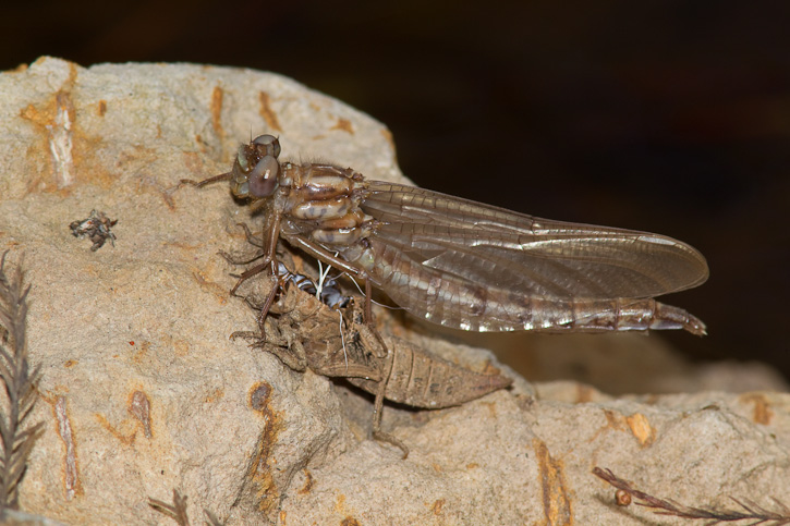 The next 5 images show a female Ashy Clubtail emerging from its exuviae. These 5 images were taken in Jasper Co., Texas, in March, 2010, with a Canon EOS 1D Mark IV and an EF 300mm F/4 L IS lens and 2X extender and 580 flash. | ![]() |