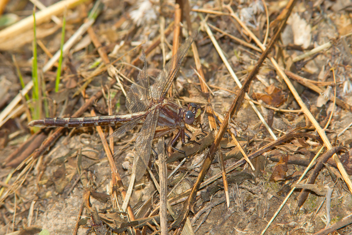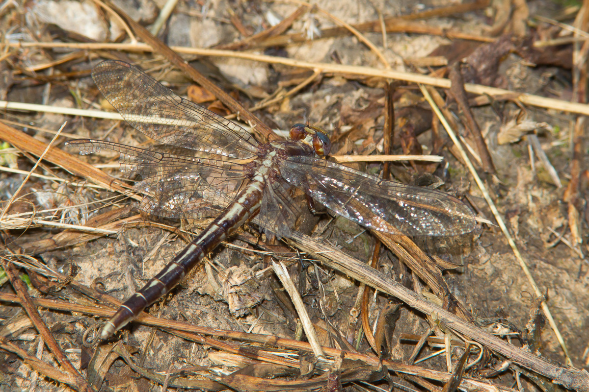 The teneral female Ashy Clubtail on the right had probably just emerged. This shot was taken in Jasper Co., Texas, in March 2012 with a Canon EOS 1D Mark IV and a Sigma 50-500mm lens and Canon 580 flash. | ![]() |