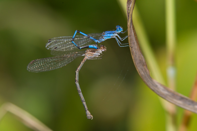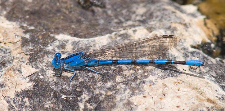 The Aztec Dancer (Argia nahuana) is a common damselfly of the southwestern U.S., where it occupies a variety of habitats from clear, flowing streams to seepages from ponds to some rivers. The photo here was shot along a clear Texas hill country stream on the Balcones Canyonlands NWR in Travis Co., Texas in June 2003. The image was a digital capture with a Canon EOS 10D and EF 180 Macro lens with a 1.4X extender and a ring flash. | ![]() |