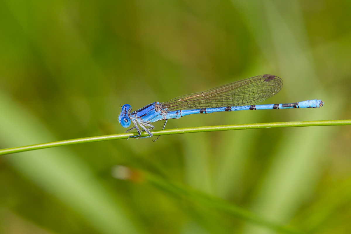 The male Aztec Dancer shown here was along the Arikaree River, in Yuma Co., Colorado, in June, 2007. This shot was taken with a Canon EOS 1D Mark III and EF 300mm F/4 L IS lens and 2X extender. | ![]() |
