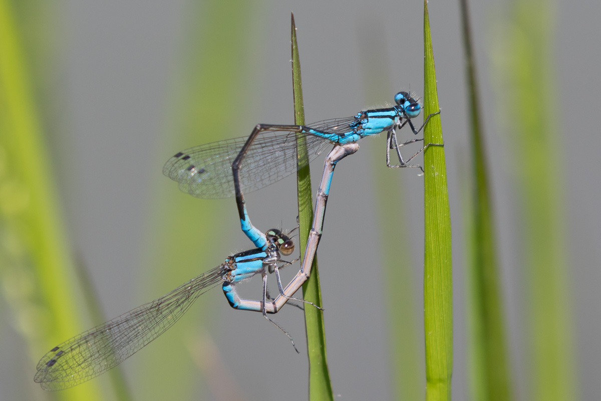 Azure Bluet Enallagma aspersum pair in copula north of Broken Bow, McCurtain Co., Oklahoma 8 May 2018 |