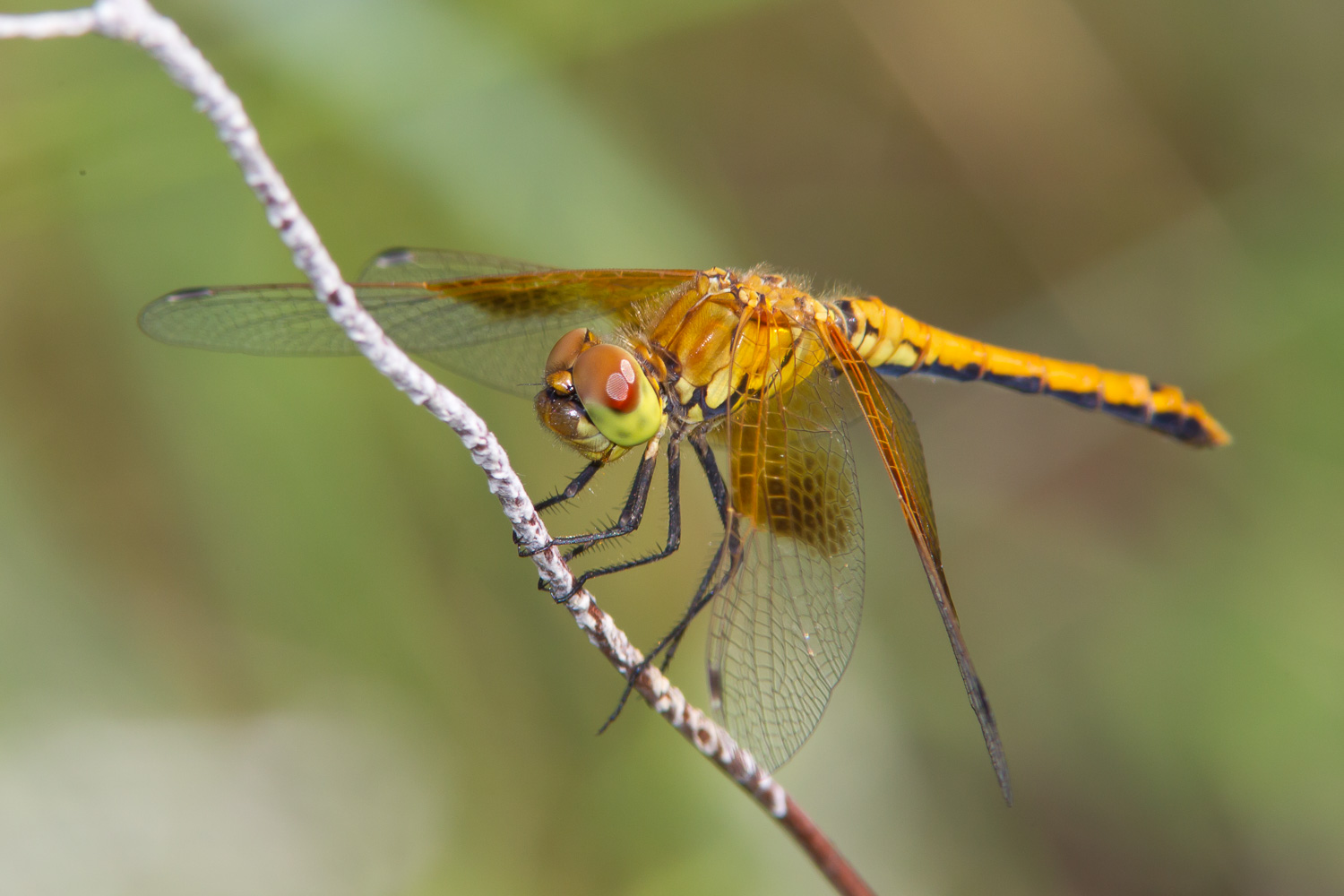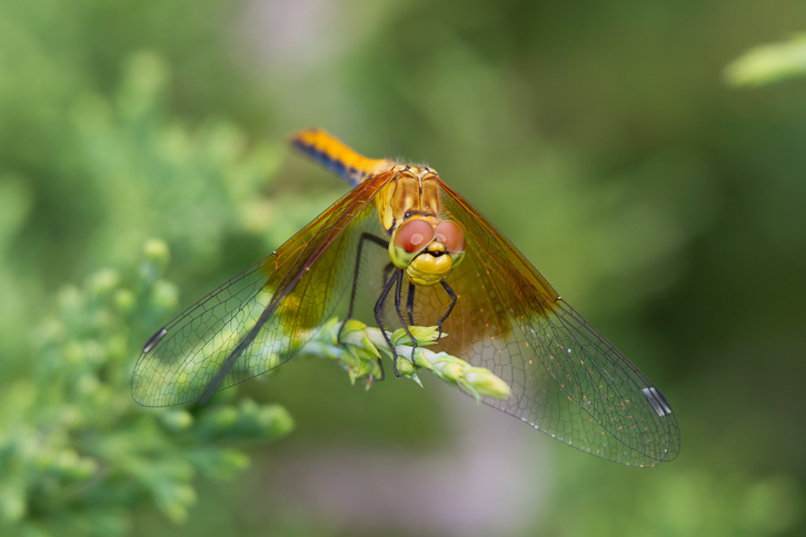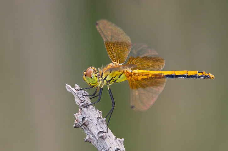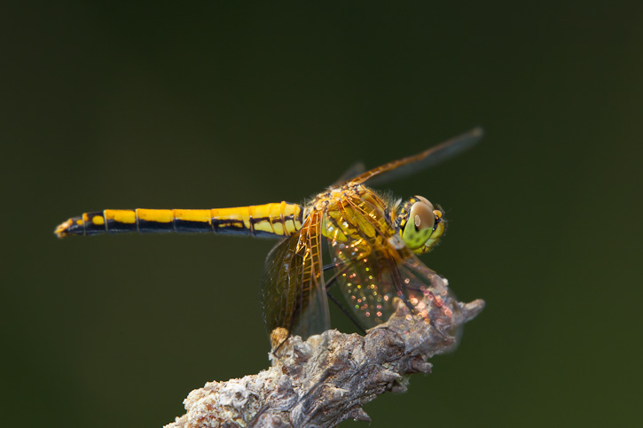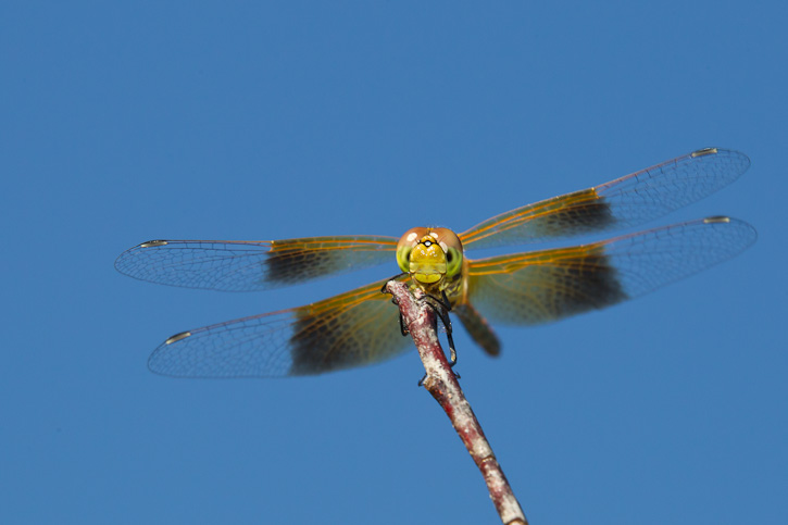 The next fourteen images of Band-winged Meadowhawks were all taken near the Niobrara River, Cherry Co., Nebraska, in July, 2011, with a Canon EOS 1D Mark IV and a Sigma 50-500mm lens and Canon 580 flash. | ![]() |