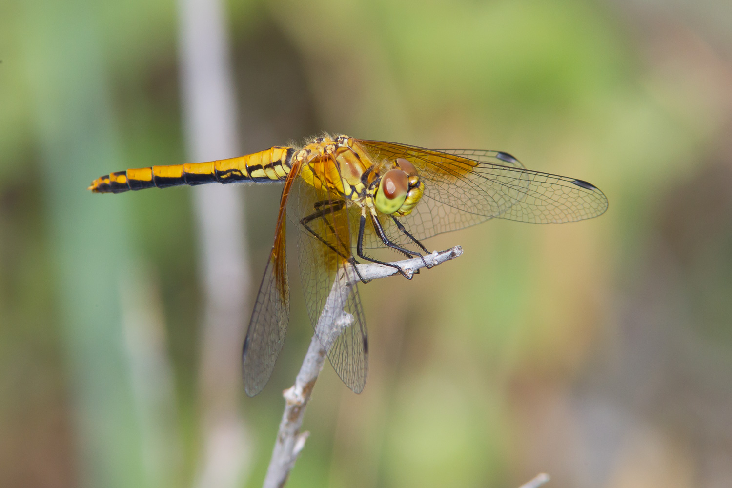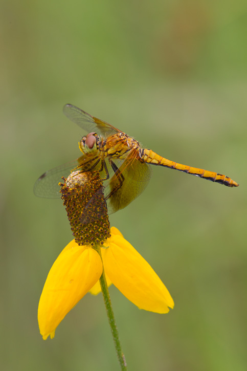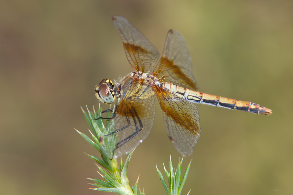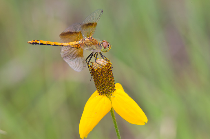 The female Band-winged Meadowhawks in the next 3 shots were in Penobscot Co., Maine, in August, 2009. These images were taken with a Canon EOS 1D Mark III and EF 300mm F/4 L IS lens and 2X extender. | ![]() |