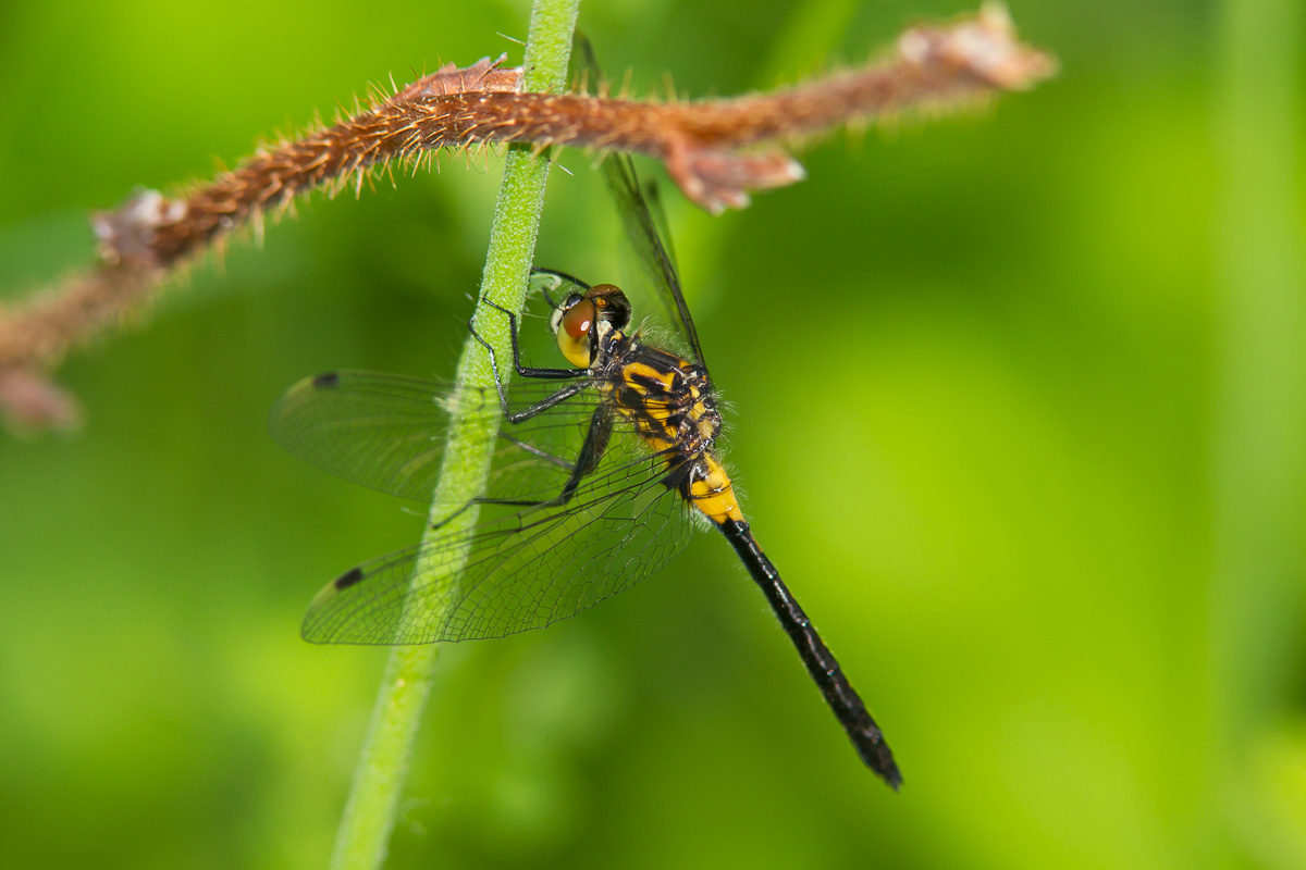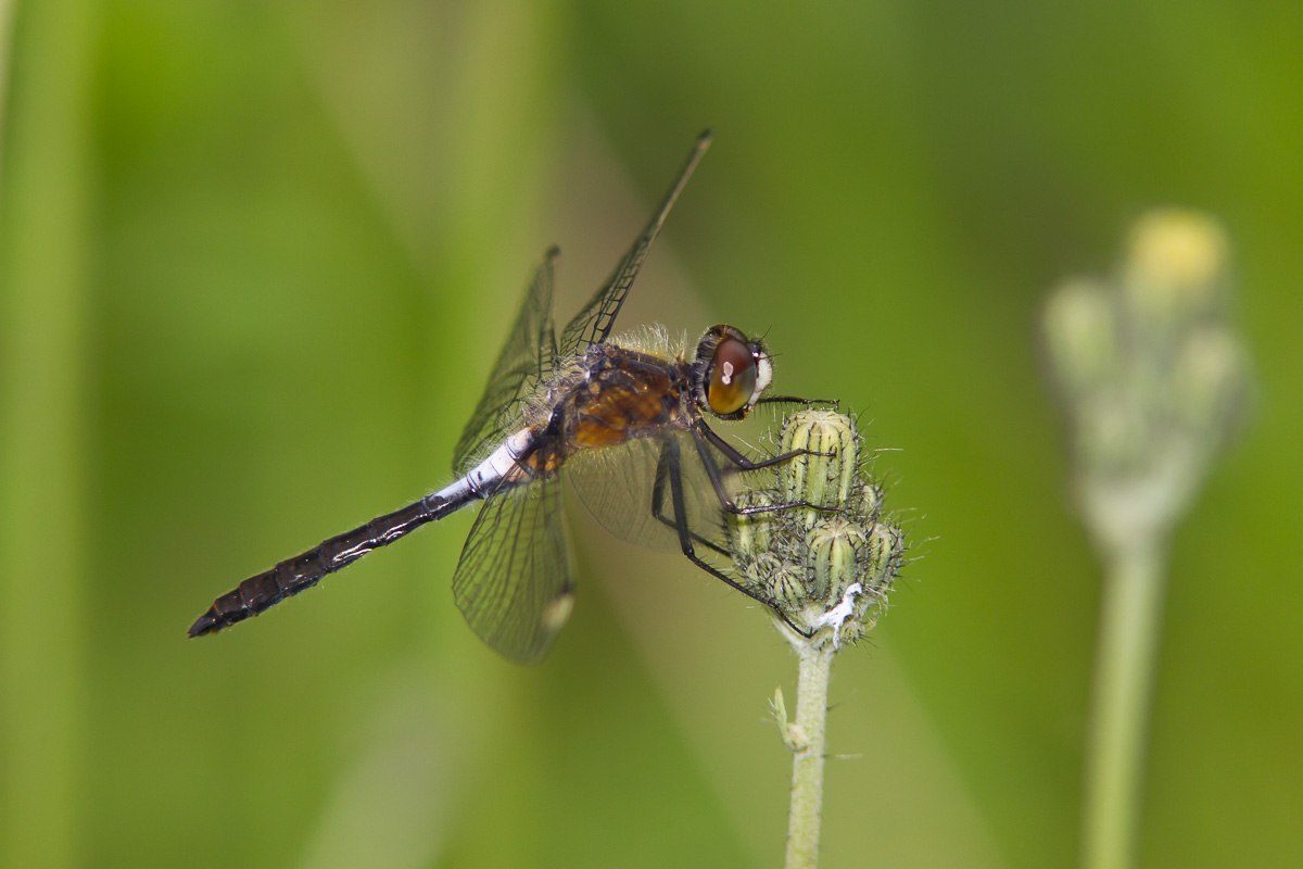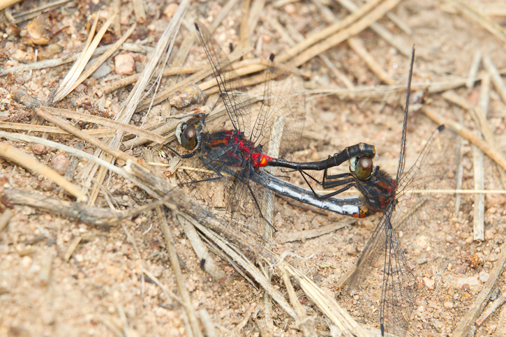 The Belted Whiteface (Leucorrhinia proxima) occurs in the northern U.S. as well as most of Canada. The males shown in the first 2 shots were photographed in Algonquin Provincial Park, Nipissing Co., Ontario, Canada, in July, 2005, with a Canon EOS 1D Mark II and EF 300mm F/4 L IS lens with a 2X extender and 580 EX flash. | ![]() |