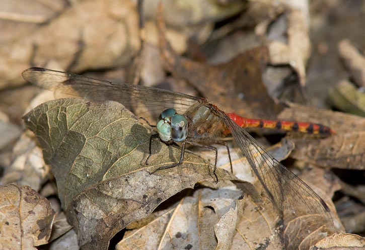 The Blue-faced Meadowhawk (Sympetrum ambiguum) is essentially a dragonfly of the eastern United States. It occurs as far west as central Texas and the top 4 images here were taken in Austin, Travis Co., Texas, in November, 2007, with a Canon EOS 1D Mark III and EF 300mm F/4 L IS lens and 2X extender. | ![]() |