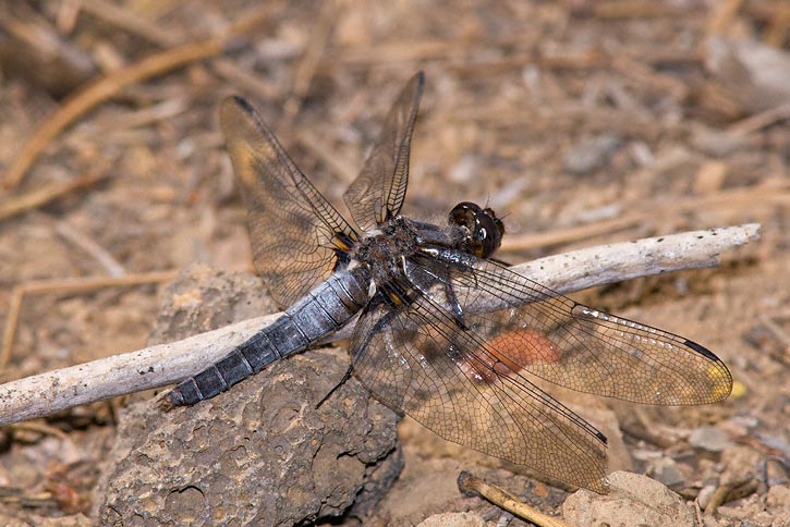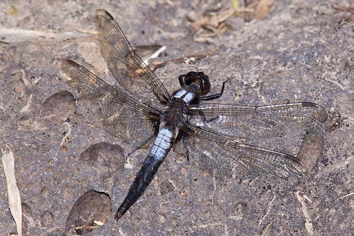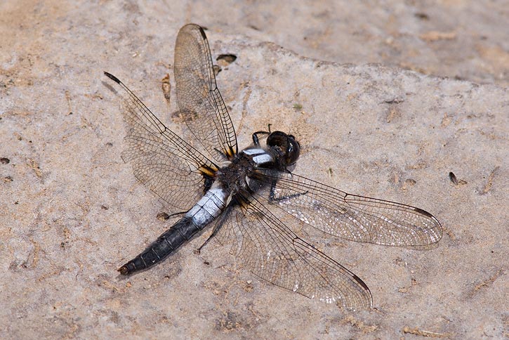 The Chalk-fronted Corporal (Ladona julia) mainly occurs in the northeast and northwest U.S., as well as parts of Canada. There are a number of records well south of this range, however. The first shots here were taken in Algonquin Provincial Park, Nipissing Co., Ontario, Canada, in July, 2005, with a Canon EOS 1D Mark II and EF 300mm F/4 L IS lens with a 2X extender and 580 EX flash. | ![]() |
