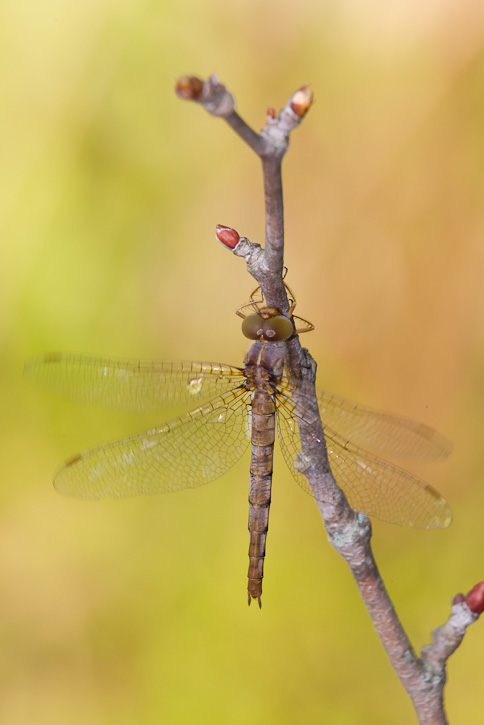 Like other members of its genus, the Cinnamon Shadowdragon (Neurocordulia virginiensis) typically flies only at dusk. This species flies low and fast over rivers and streams with moderate currants, typically at dusk and less frequently at dawn. The three shots of a female on the right were posed since natural photos are very difficult to obtain. These shots were taken along the Chattooga River, Rabun Co., Georgia, in May, 2011, with a Canon EOS 1D Mark IV and a Sigma 50-500mm lens and Canon 580 flash. | ![]() |