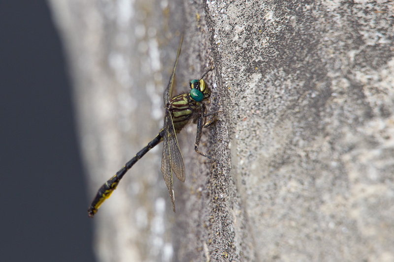 The Clearlake Clubtail (Gomphus australis) is a dragon of clear, sandy-bottomed lakes in the southeastern United States. It ranges west to eastern Louisiana and north along the coast to the South Carolina and North Carolina border area. Abdominal segment 9 (S9) is especially long which serves as a field character for this species. The first six shots on this page, all males, were taken at Cheraw State Park, Chesterfield Co., South Carolina, in May, 2012, with a Canon EOS 1D Mark IV and a Sigma 50-500mm lens and Canon 580 flash. | ![]() |