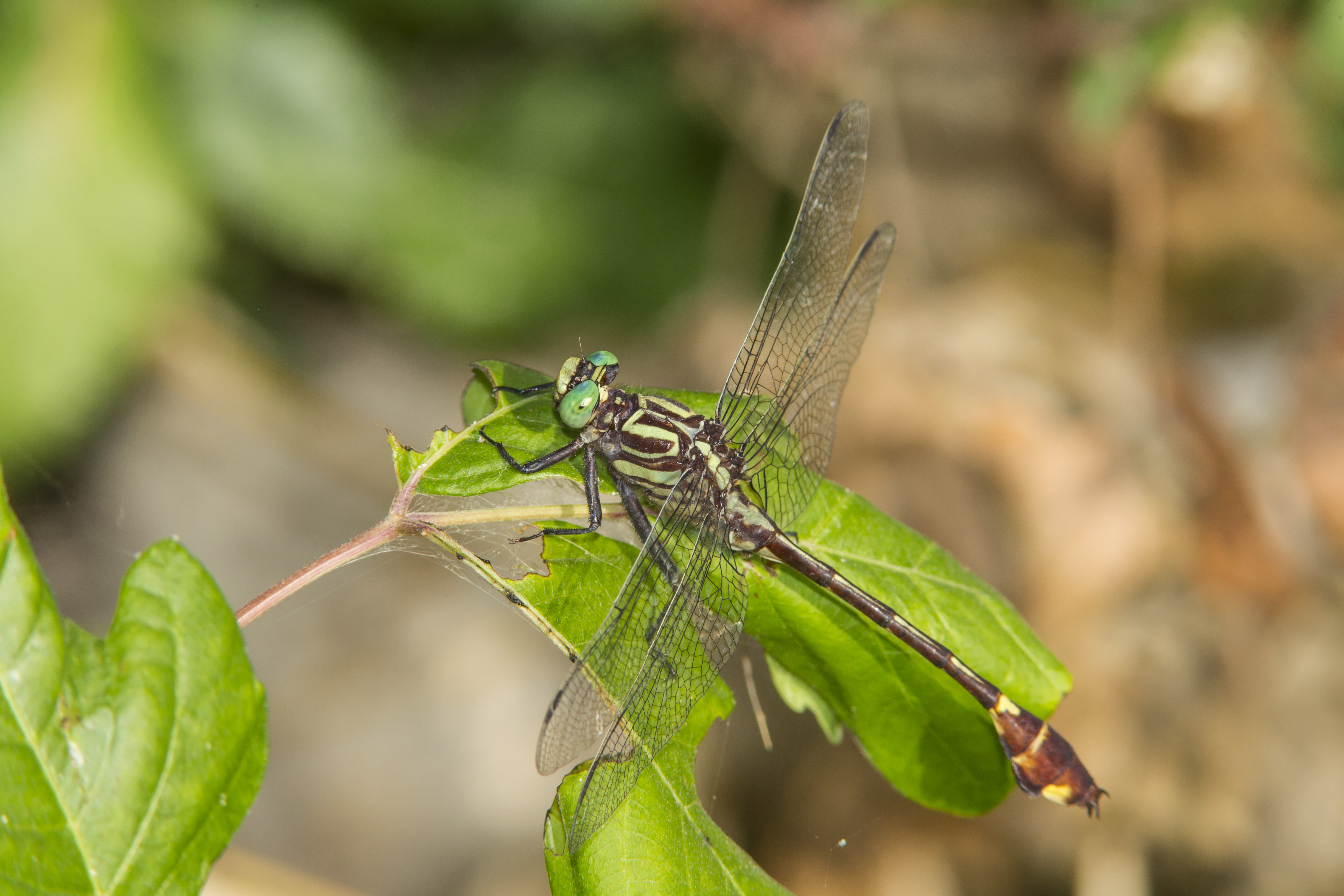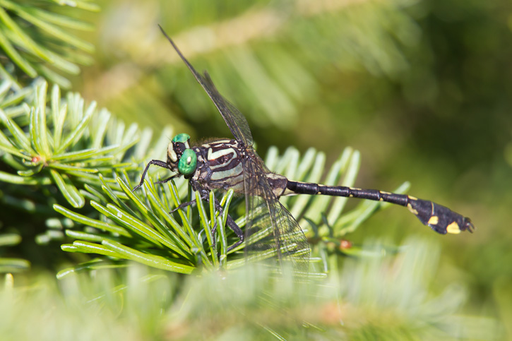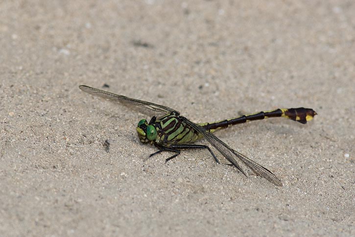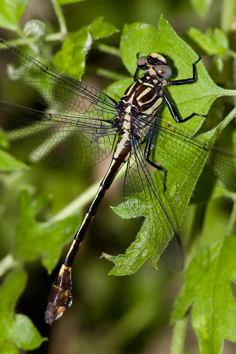 The young male Cobra Clubtail in the next two shots was in Austin, Travis Co., Texas, in May, 2011. These shots were taken with a Canon EOS 1D Mark IV and a Sigma 50-500mm lens and Canon 580 flash. | ![]() |