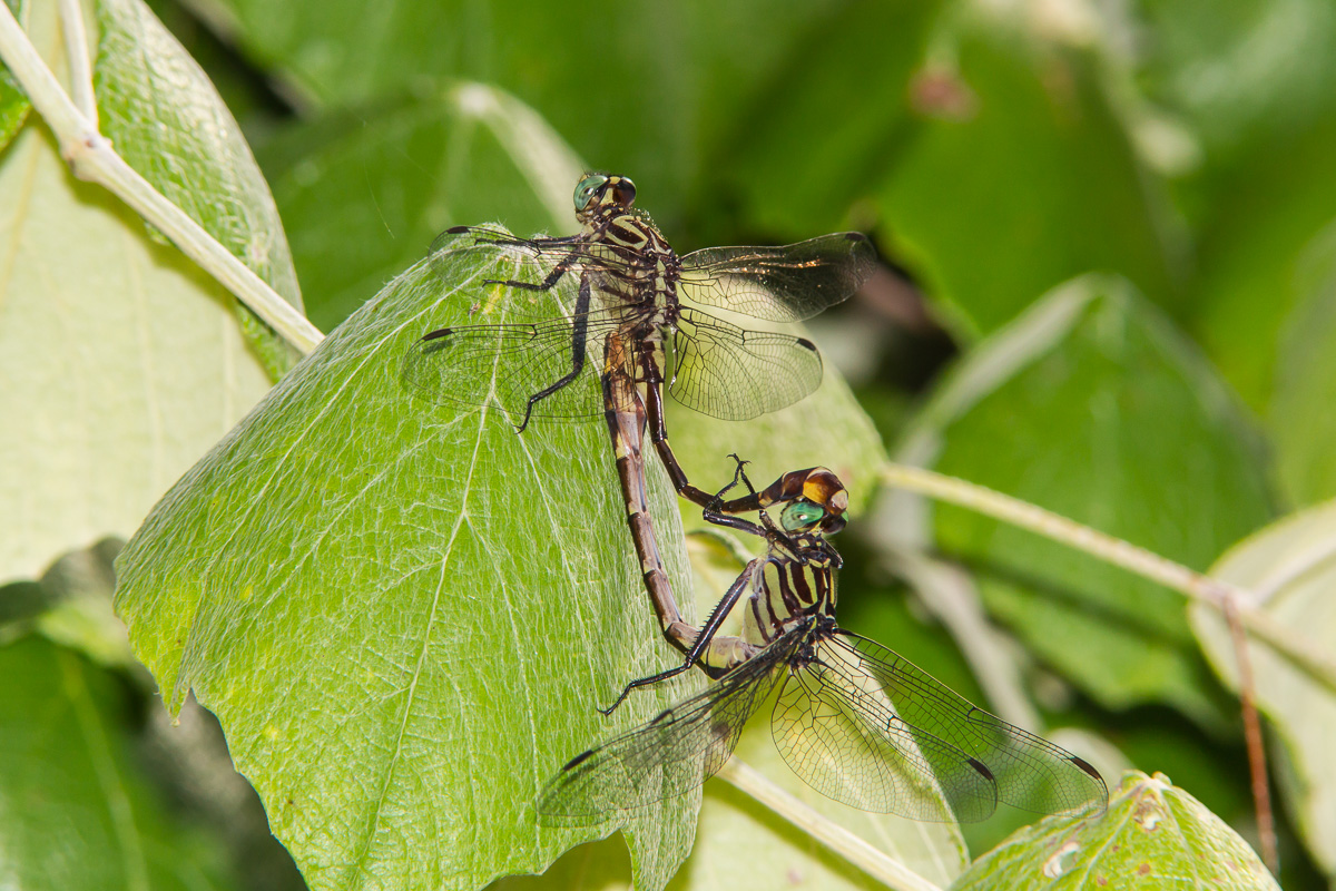 On the right is a shot of a pair of Cobra Clubtails in copulation. This image was taken in June, 2004, in Austin with a Canon EOS 1D Mark II and EF 300 mm F/4 L IS lens and 550 EX flash. | ![]() |