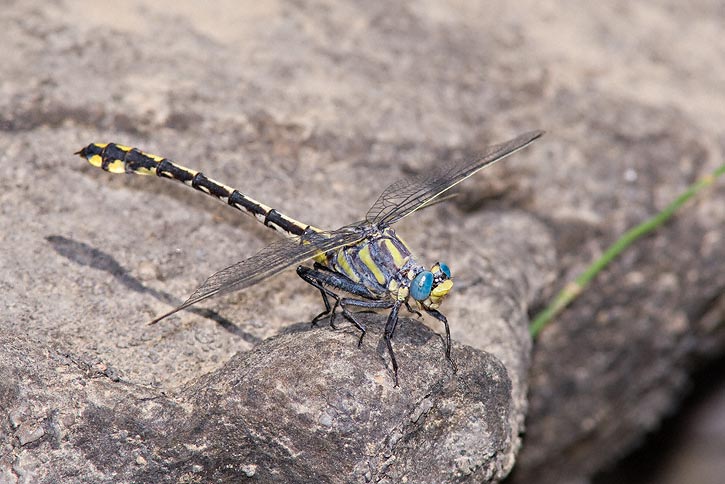 The Columbia Clubtail (Gomphus lynnae) is a local dragonfly of the Pacific Northwest and is found only in parts of Washington and Oregon. It prefers rivers and streams and may perch on mud banks or rocks. Its thorax may become quite pruinose on some individuals. The female shown here was on the John Day River, Wheeler Co., Oregon, in July, 2008. These images were taken with a Canon EOS 1D Mark III and EF 300mm F/4 L IS lens and 2X extender. The next 4 shots, of males, were in the same area. |