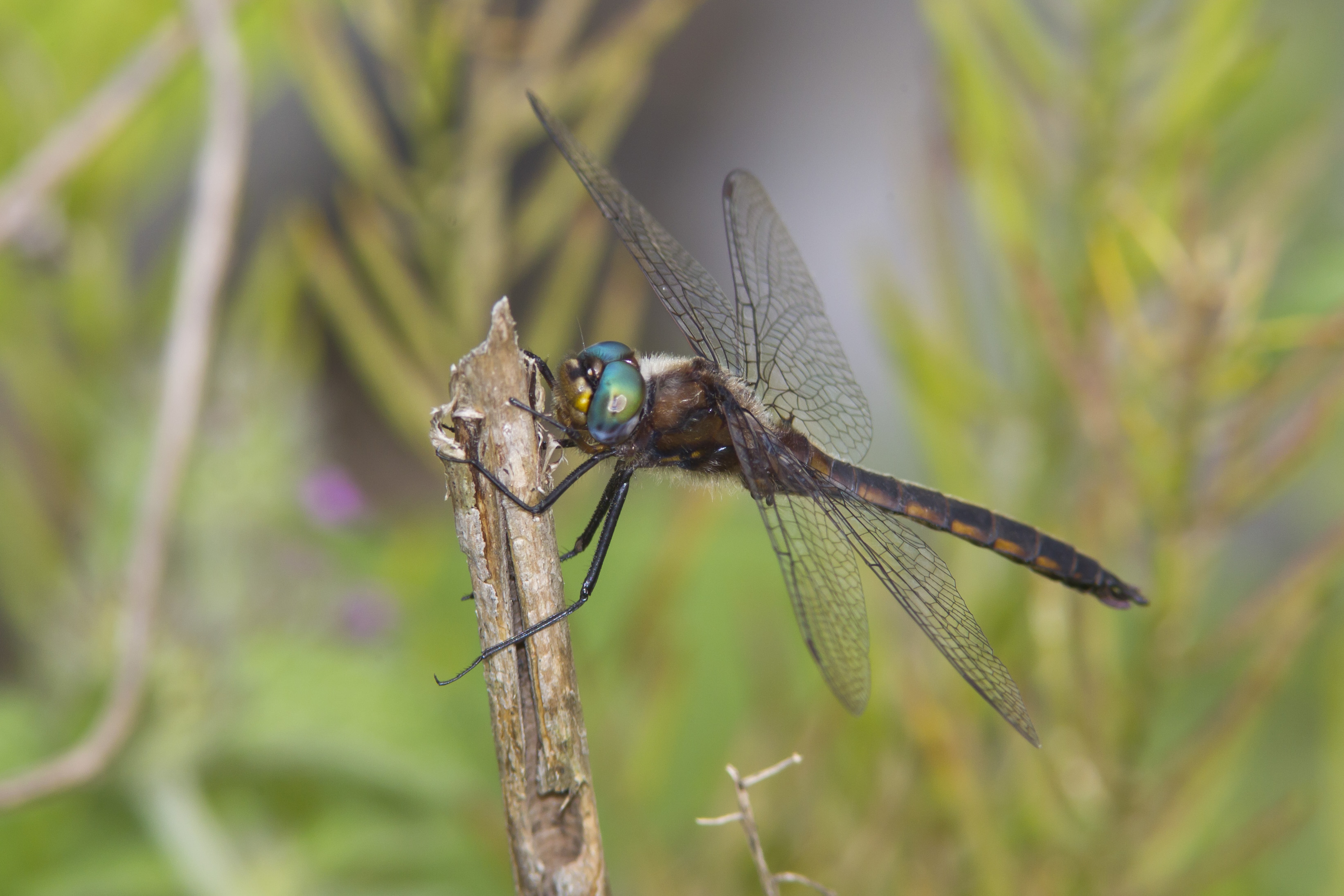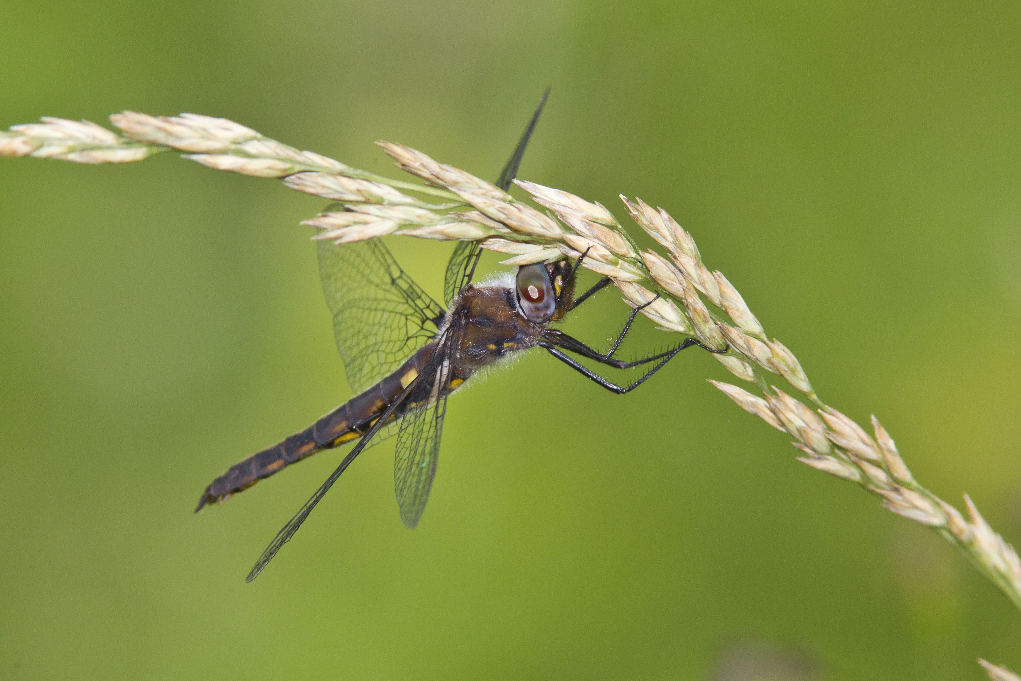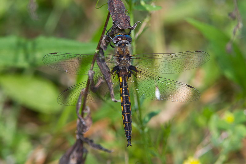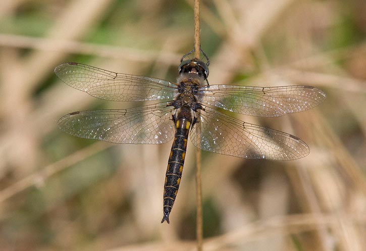 The next two shots of a male and female Common Baskettail were taken in April, 2010, near the edge of Caddo Lake, Marion Co., Texas, with a Canon EOS 1D Mark IV and an EF 300mm F/4 L IS lens and 580 flash. These individuals show the maculation in the wings which is often apparent on this species. Note the difference in this maculation compared to the Mantled Baskettail. | ![]() |