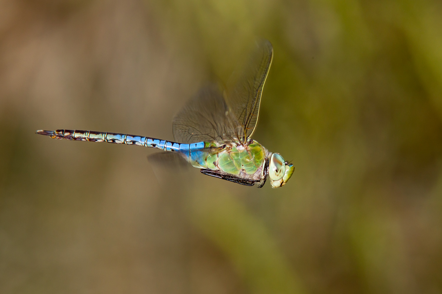 The male Common Green Darner in flight in the next 2 shots, was in Austin, Travis Co., Texas, in October, 2010. These shots were taken with a Canon EOS 1D Mark IV and a Sigma 50-500mm lens and Canon 580 flash. | ![]() |