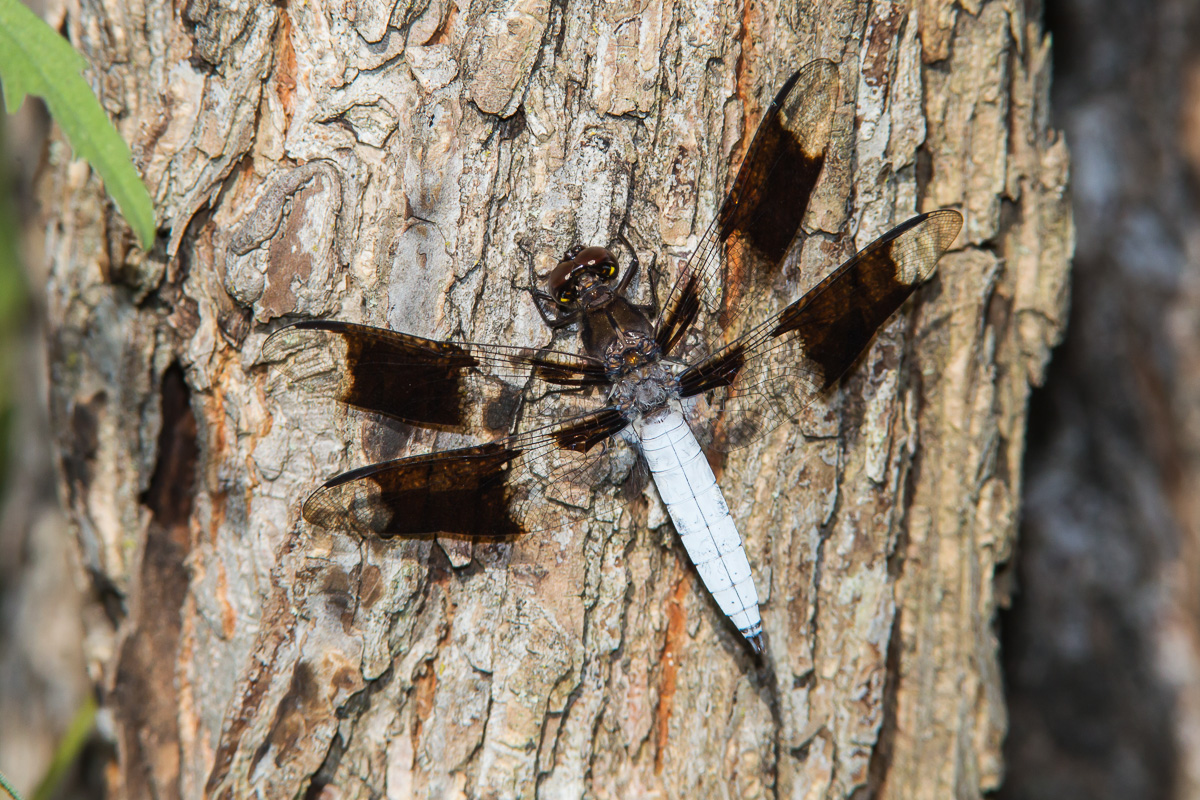 Common Whitetail Plathemis lydia male on tree trunk Yett Creek Park, Austin, Travis Co., Texas 16 July 2015 Lat 30.429596, Lon -97.737002 |