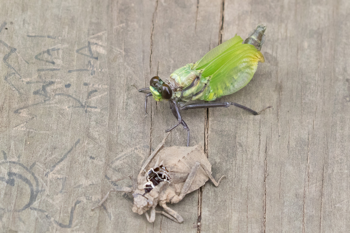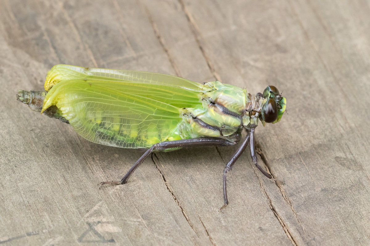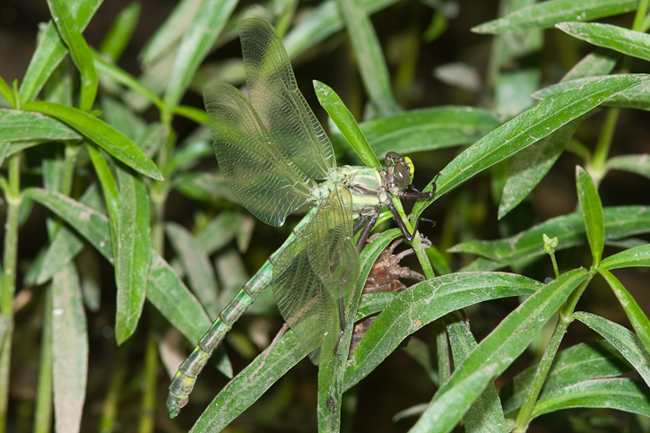 The next 3 shots of a female Dragonhunter just after emerging from the exuviae as well as the shot of a mature male were all taken along the Fourche Renault Creek in Washington Co., Missouri, in June, 2009, with the same gear as described previously. | ![]() |